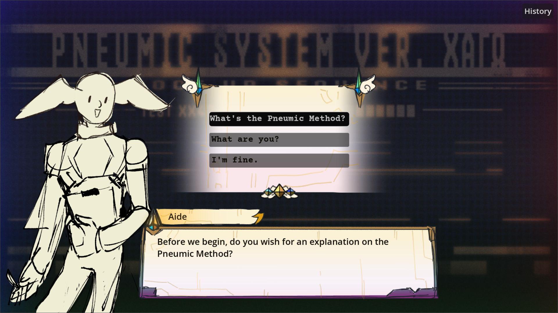 Enter the conflicting mindscapes and assist the “Assistant Inquiry Demystifier Executable” or Aide in examining the world and the entities present their in.
